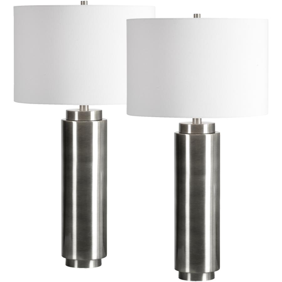 Free shipping* more like this more options. Uttermost, robert abbey, and more! Grandview gallery 27 curvy modern metal table lamp set with tapered drum shades (set of 2) details. The right modern table lamps can really wrap things up in a neat little package and bring out the best in any decor. This table lamp has a brushed nickel and ribbed glass base with a blue finish. The best nickel brushed table lamps will cast a soft light and illuminate specific areas in the room, while also enhancing the decor. Free shipping & free returns* more like this uttermost niah brushed nickel metal table lamp $ 182.60. Modern satin nickel table lamps. It makes sense that you choose lamps that are durable and energy efficient, while containing winning features like adjustable positions, dimmable lights, 3 way switches to adjust brightness, and more. Browse through our wide selection of brands, like and. Sold and shipped by lamps plus. Flesner brushed nickel finish 20 high outlet and usb lamp $ 39.99. Free shipping & free returns* more like this 100+ colors.